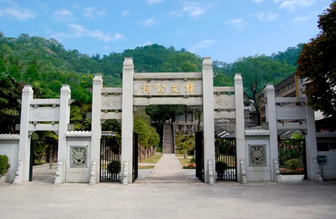 韩文公祠倚山临水,环境清幽。回柱三门石坊上书刻着“韩文公祠”四个字,从右门入,牌坊后甬道右侧,辟建近百米碑廊。