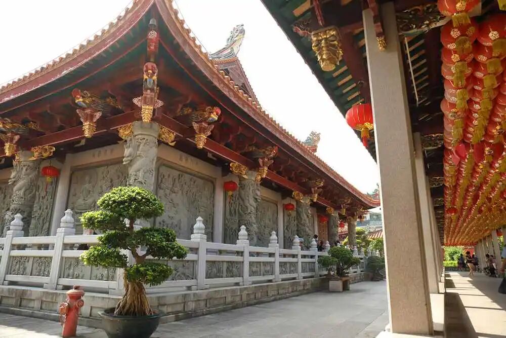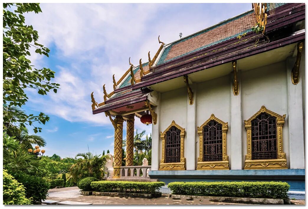 山墙的装饰、门窗的顶尖形集中了泰国古代的造型艺术,让你不用出国也能拍出有泰国范的照片。