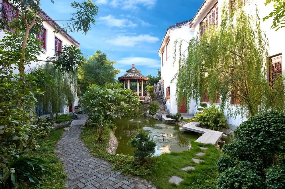 一座古色古香的“颐园”。 馆内有假山,有喷泉,有亭子,有花草树木,有小湖,湖里还有自在游鱼,清幽恬静,山清水秀,除了了解一代汉学大家外,还是一个休息的好去处。